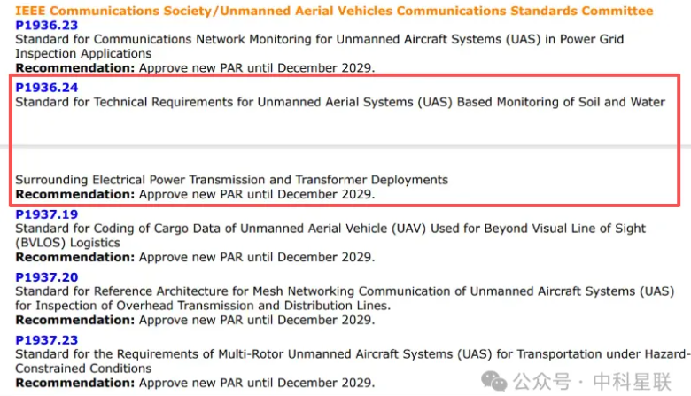 2025年12月,在IEEE SA 标准委员会(NesCom)最新一轮审议中,由“国网山东省电力公司电力科学研究院”主导,中科星联参与的国际标准《P1936.24:输变电工程无人机水土保持监测技术规程》正式获批立项,项目周期至2029年12月。